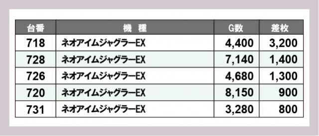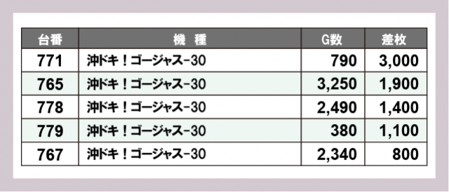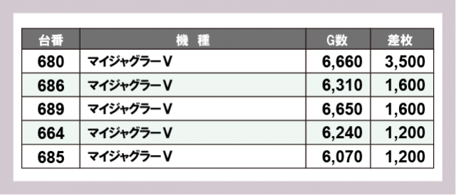 ※差枚数順に掲載しています