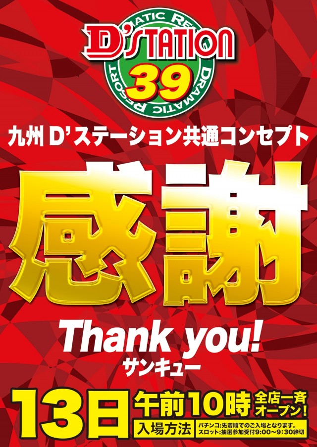7月13日 D’ステーション全67店舗一斉午前10時開店!!