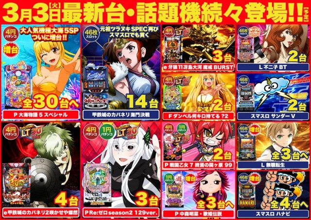 3月3日(火)長崎D’ステ全店合同新台入替!午前10時開店!