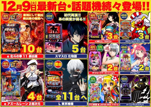 明日大型新台入替!!最新台・話題機10機種32台大量導入!