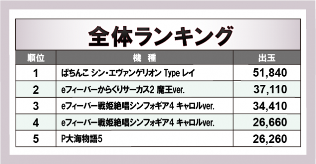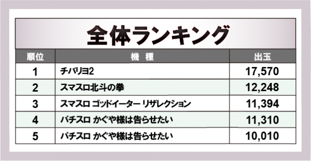 ※出玉数順に掲載しています