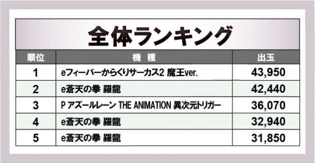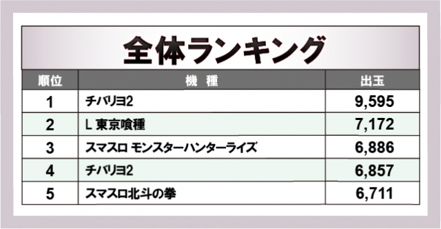 ※出玉数順に掲載しています