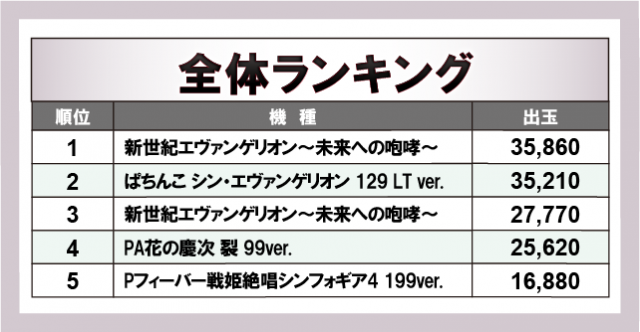 ※出玉数順に掲載しています