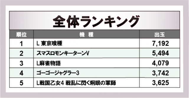 ※出玉数順に掲載しています