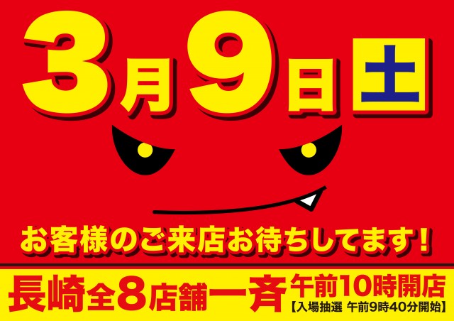本日6日!新台入替!午前10時開店!入場抽選9:40開始