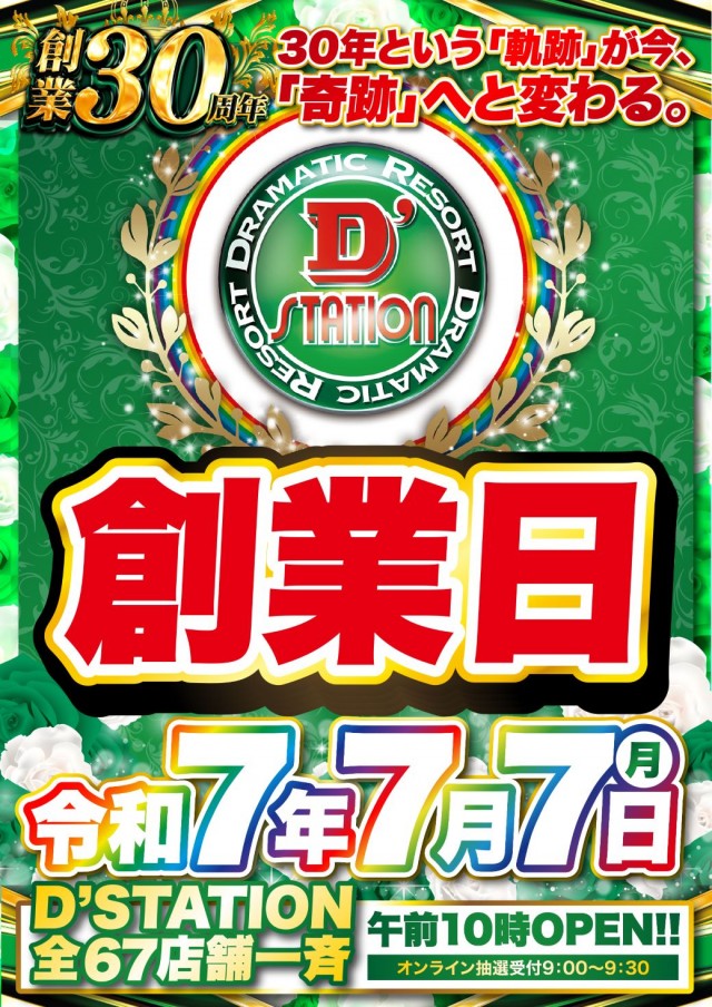 7月7日はD’ステーション創業日!全店一斉午前10時オープン