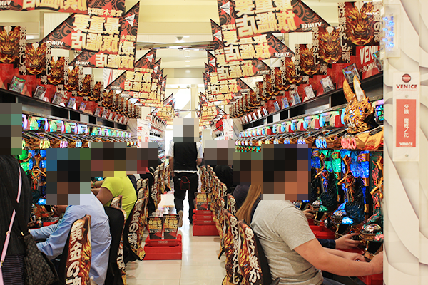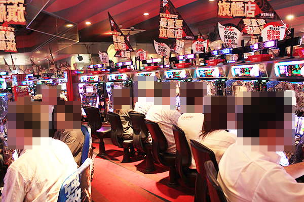 右打ちを楽しむ姿もあり、きらびやかな光景が広がっていた。