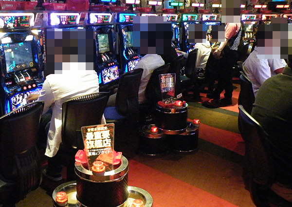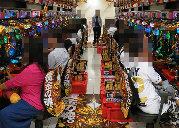 「パチスロ北斗の拳 強敵」や「ぱちスロ テラフォーマーズ」も同様の盛況ぶりと、活気のある光景をあちこちでみられた。