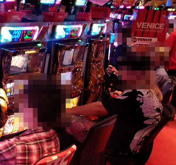 パチスロコーナーをみると、明るい雰囲気に包まれ、全体に笑顔が広がっているといった状況。