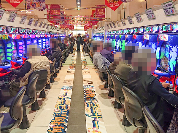 プレイヤーでにぎわう店内を見渡すと、パチンコ・パチスロともに明るい雰囲気が漂っていた。