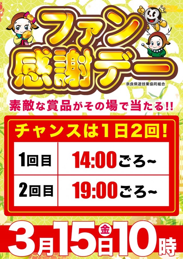 [マルハン大安寺店]3月17日(日)10時開店 抽選9:40