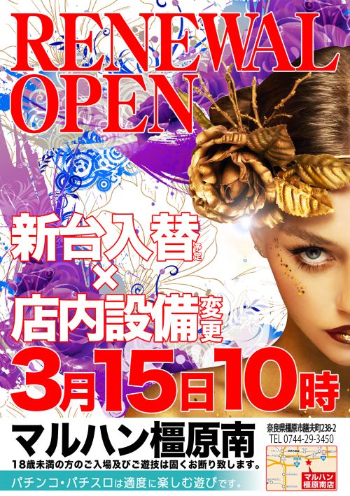 「マルハン橿原南」リニューアル 新台入替×設備変更