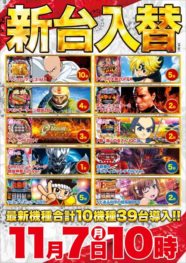 【マルハン大安寺店】11月7日(月)10時オープン!!