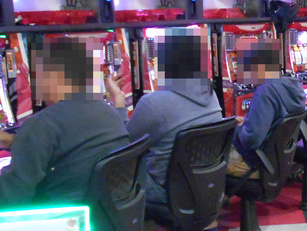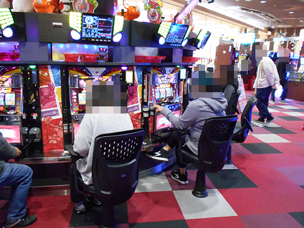 なかでも盛り上がりを感じたのがジャグラーシリーズ。中央通路を境目として、1円パチンコ側のエリアがシリーズ機のみで構成されていることも印象的であり、パチスロの醍醐味を堪能するといった多くのプレイヤーを目にしている。
