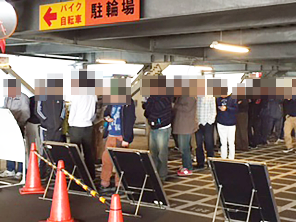 取材日の朝、並びに集まっていたのはおよそ200名。多くのプレイヤーで、開店前から大きな盛り上がりをみせていた。