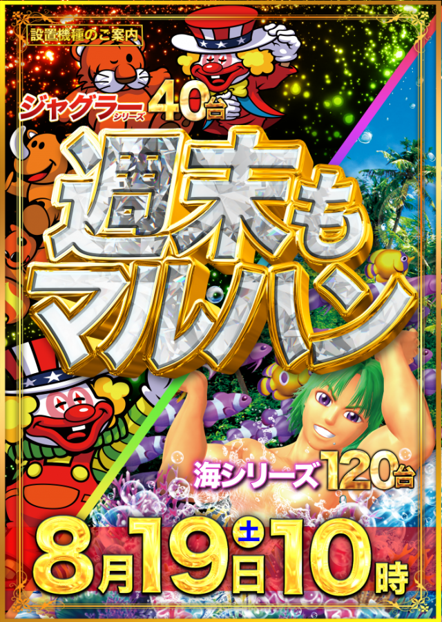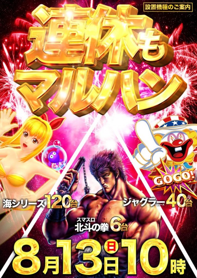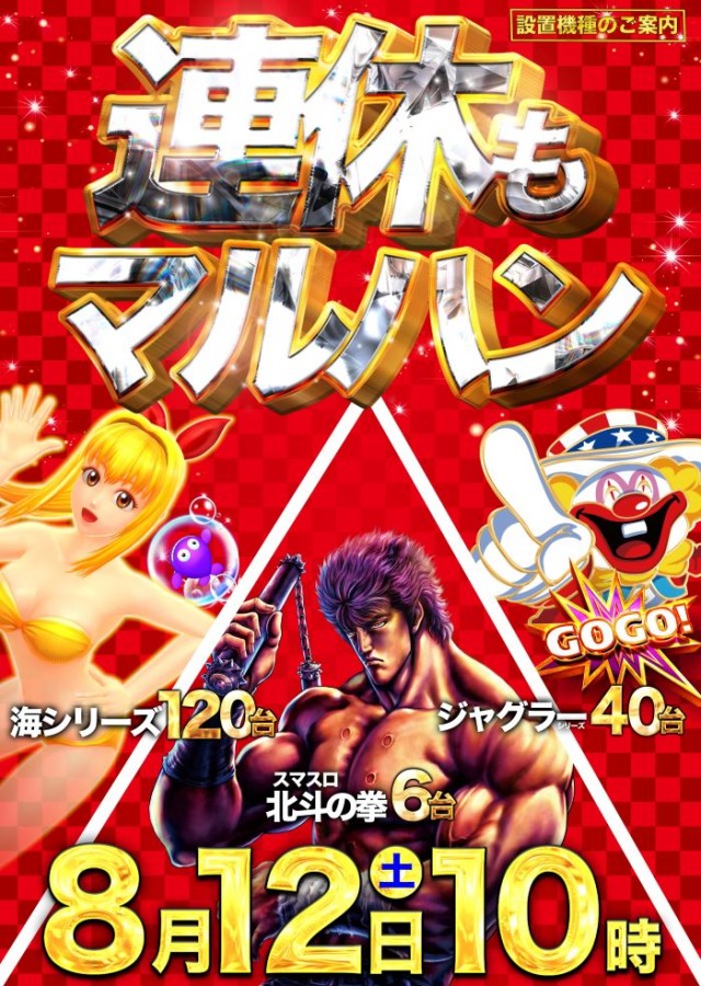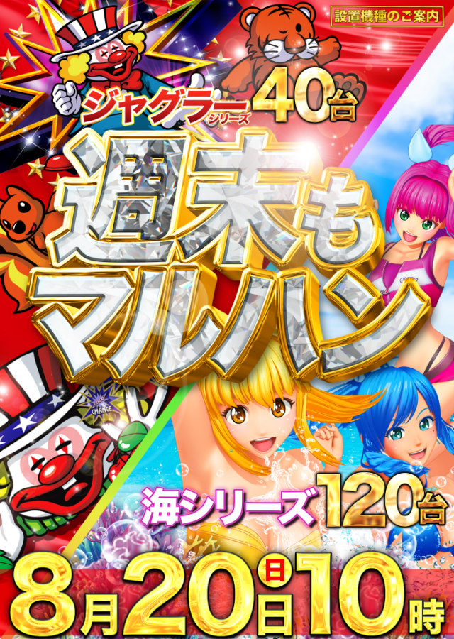 【マルハン橿原南店】8月27日(日) あさ10時開店