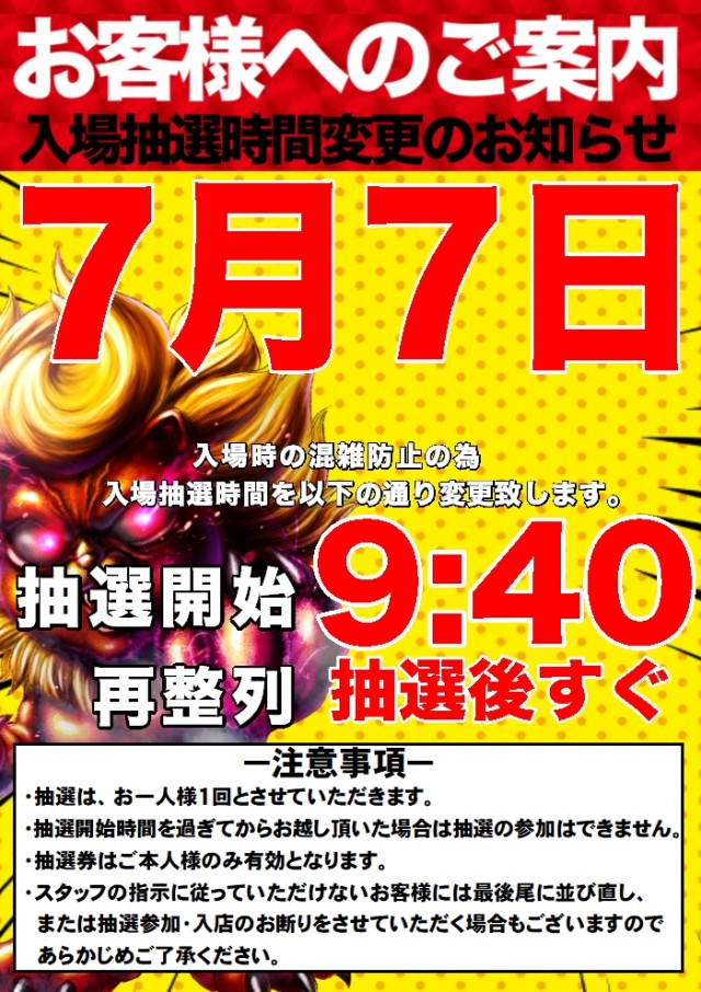 9時50分までにお並びの方を対象に入場順番抽選 |
