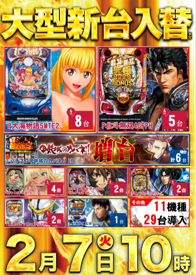 【マルハン橿原南店】2月7日(火)☆新店長就任☆&新台入替