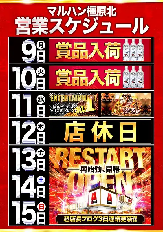 マルハン橿原北店の店舗からのお知らせ