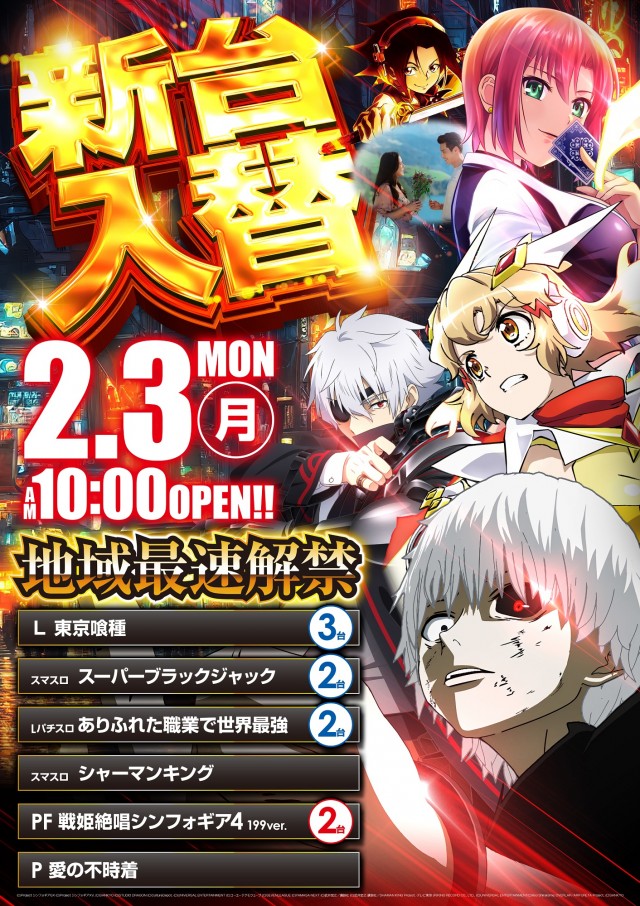 2.3(月)新台入替!明日朝10時開店!