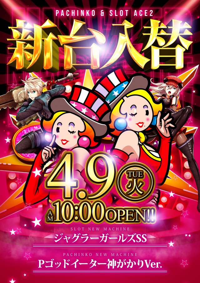 明日4.9(火)新装開店!先着入場!朝10時オープン!!