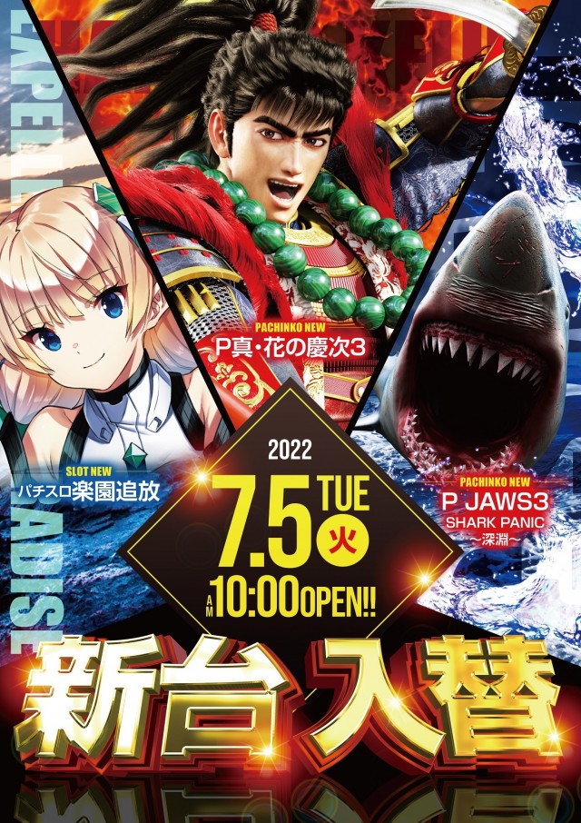 明日7.5(火)新装開店!先着入場!朝10時オープン!!