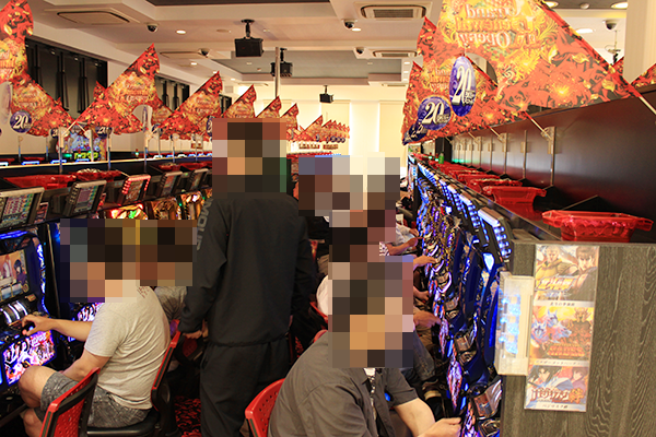 開店直後の4円パチンコでは海物語シリーズ、20円パチスロでは「バジリスク~甲賀忍法帖~絆」や「ミリオンゴッド-神々の凱旋-」が好評となっていた。