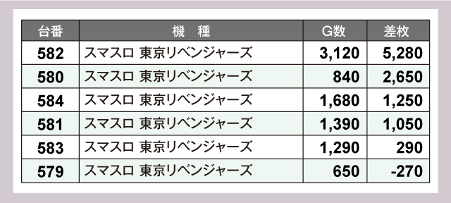 また、差枚上位にランクインした台以外からも多数の好調台が確認されており、『パチスロ かぐや様は告らせたい』と『スマスロ北斗の拳』は、最終的に半数以上の台がプラス差枚に。さらに、『スマスロ 東京リベンジャーズ』は+5,280枚を皮切りに全6台中5台がプラス差枚となる見事な結果を残しているだけに、ファンにとって充実の一日となったのは間違いないだろう。