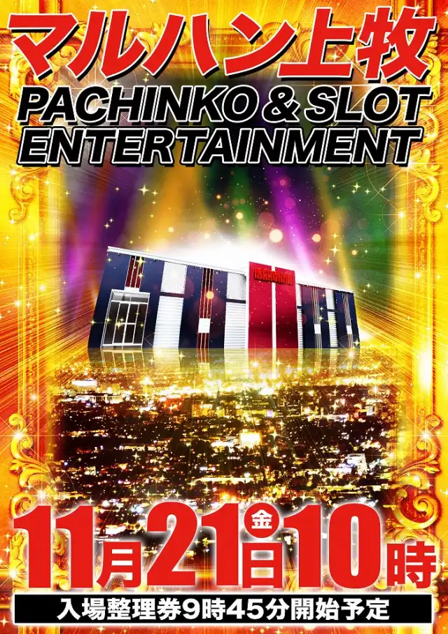 【マルハン上牧店】11月20日(木)10時開店!新台入替!