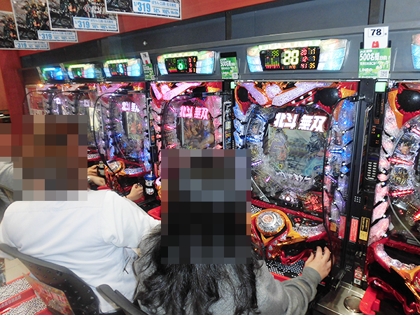開店直後は4円パチンコの「CR牙狼 魔戒ノ花」、20円パチスロの「バジリスク~甲賀忍法帖~絆」などが注目を集めていた。