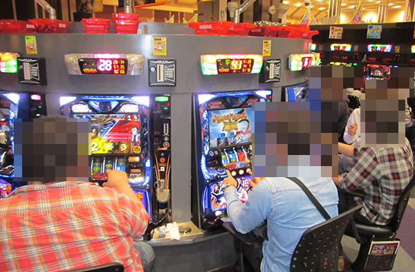開店直後はパチスロが人気となっており、「バジリスク~甲賀忍法帖~絆」や「ミリオンゴッド-神々の凱旋-」、「パチスロ北斗の拳 転生の章」など、多数の機種が満席。