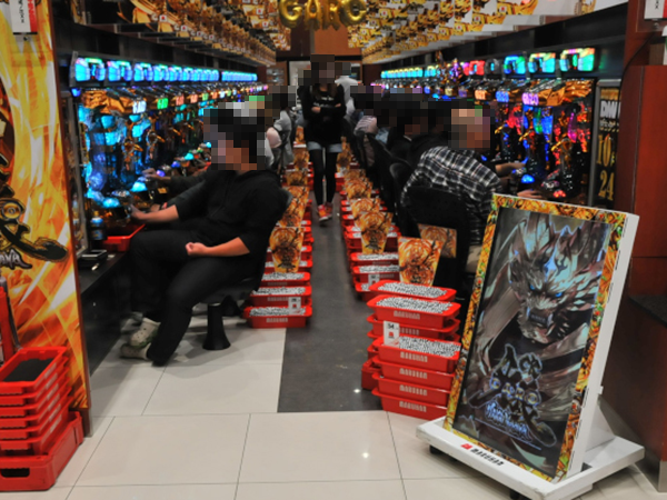 14時頃の4円パチンコではMAXタイプが注目されており、「CR牙狼 魔戒ノ花」と「CRぱちんこ仮面ライダー フルスロットル」はほぼ満席。嬉しそうな表情で遊技をしているプレイヤーも多くみられ、満足度も高かったように思う。