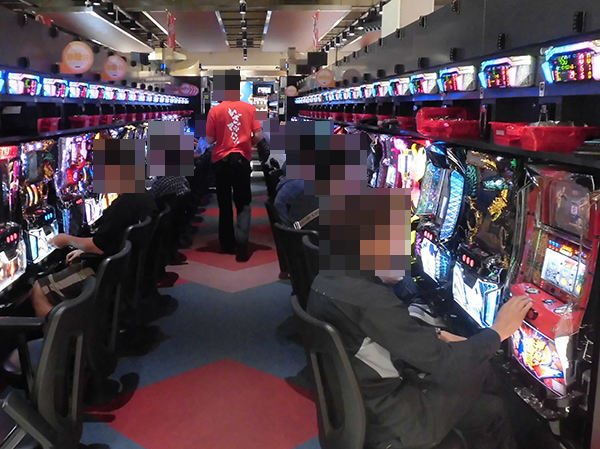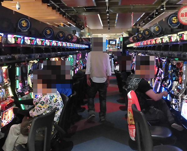 5円パチスロの「押忍!サラリーマン番長」や「十字架3」などが楽しまれているところも確認でき、プレイヤーたちはそれぞれの機種が持つ魅力をじっくりと味わえているようであった。