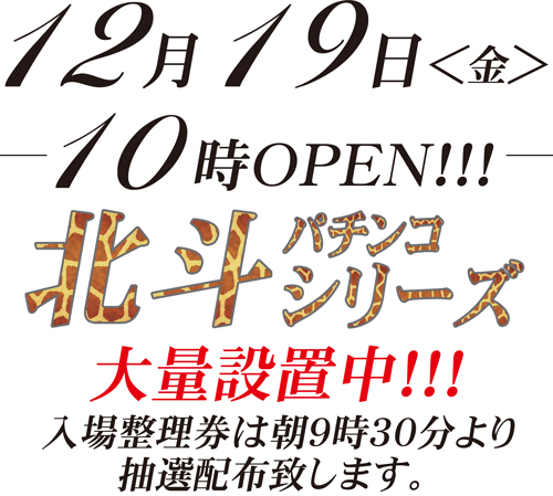 12月19日[木]パチンコ北斗シリーズ大量設置!!