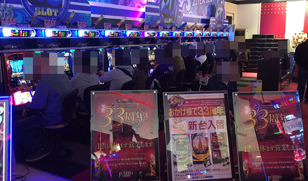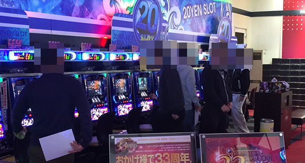 午後になっても、20円パチスロの「バジリスク~甲賀忍法帖~絆」は満席のままとなっていただけでなく、大満足といった表情のプレイヤーも確認できた。