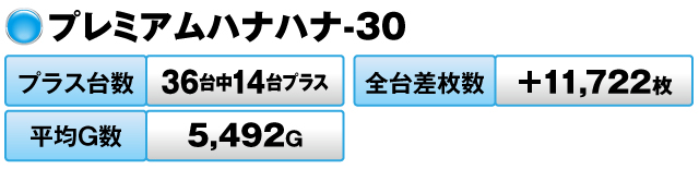 36台中14台がプラスで全台差枚数は+11,722枚を記録した。