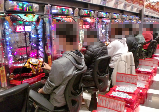 高稼働の「ぱちんこCR真・北斗無双」をはじめ、あちこちからにぎわいが感じられた「マルハン長岡平島店」。