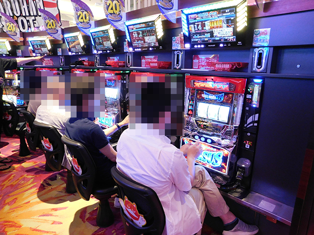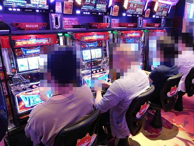 確認時は設置されている5台すべてが稼働しており、プレイヤーひとりひとりが楽しげにレバーを叩いていた。