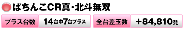 14台中7台がプラスで全台差玉数は+84,810発を記録した。
