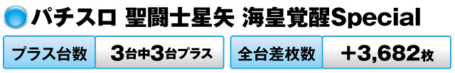 また、『パチスロ 聖闘士星矢 海皇覚醒Special』も、3台すべてがプラスで全台差枚数が+3,682枚をマークした。