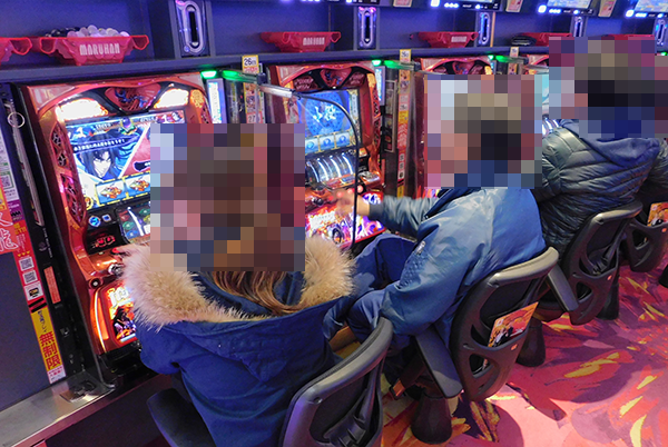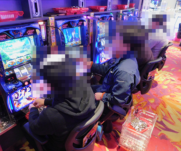 「バジリスク~甲賀忍法帖~絆」だけでなく、ホール全体がにぎわっていた「マルハン長岡平島店」。プレイヤーたちは機種の魅力を味わえているように思えた。
