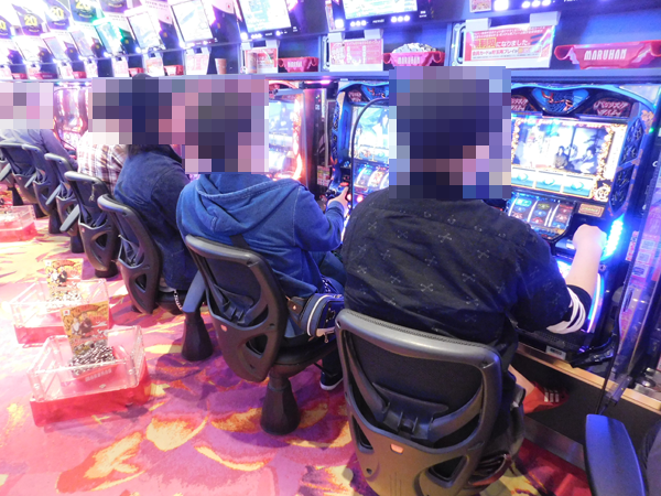 たくさんのシャッターチャンスに遭遇。ユーザーたちの明るい笑顔を数多くとらえた。「マルハン長岡平島店」の一面はパチスロコーナーで決まりだろう。