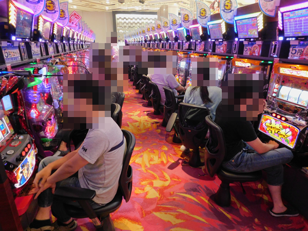 大盛況のパチスロコーナーを華やかに彩る笑顔は必見。