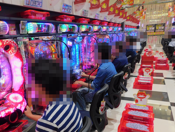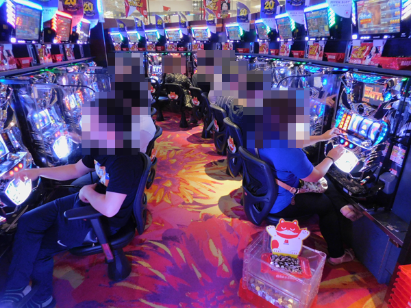 遊技をする大勢のユーザーと輝くような笑顔は見応え抜群!