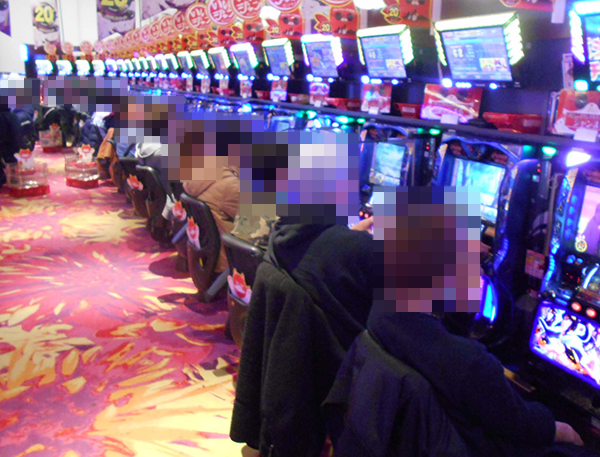 大勢のプレイヤーでにぎわうパチスロコーナーを進んでいくなかで、たくさんの華やかな光景を目撃。
