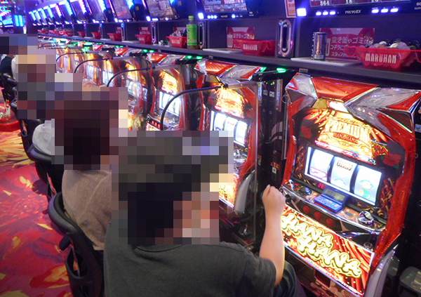 あちこちに遊技を満喫しているような姿があるなかで、主役級の存在感を放っていたのはやはり「プレミアムハナハナ‐30」。盛り上がりが大きく、魅力的に映る場所であった。