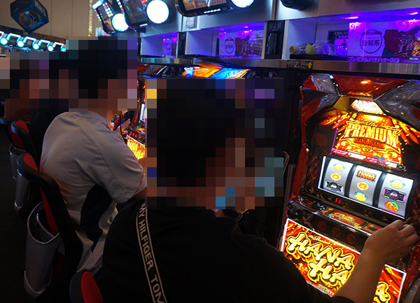 38台設置されている「プレミアムハナハナ‐30」。確認時は半数以上の台が埋まっていた。