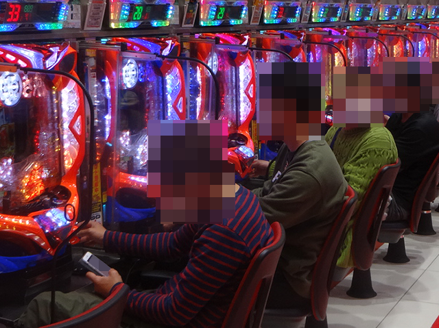 15時を過ぎた頃は26台中18台が稼働しており、なかには大当り回数が100回を上回る台もあった。