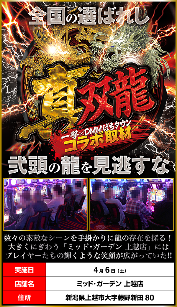 龍の存在を探っている最中に数々の鮮やかな光景がみられた「ミッド・ガーデン 上越店」。たくさんの笑顔に出会い、ステキなホールであることを実感した「真双龍」となった。