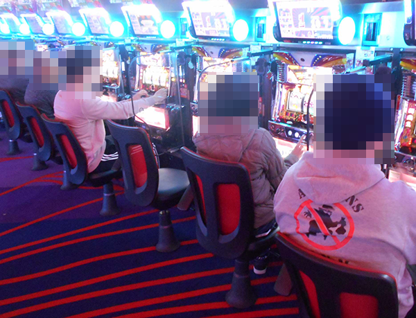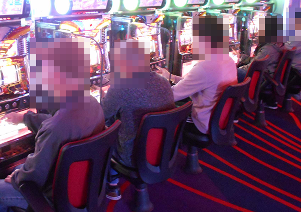 談笑をしている姿やイキイキとレバーを叩いている姿、自分の台のデータを眺めている光景など、さまざまなシーンがあったが、どのプレイヤーも共通してうれしそうな笑みを浮かべていた。
